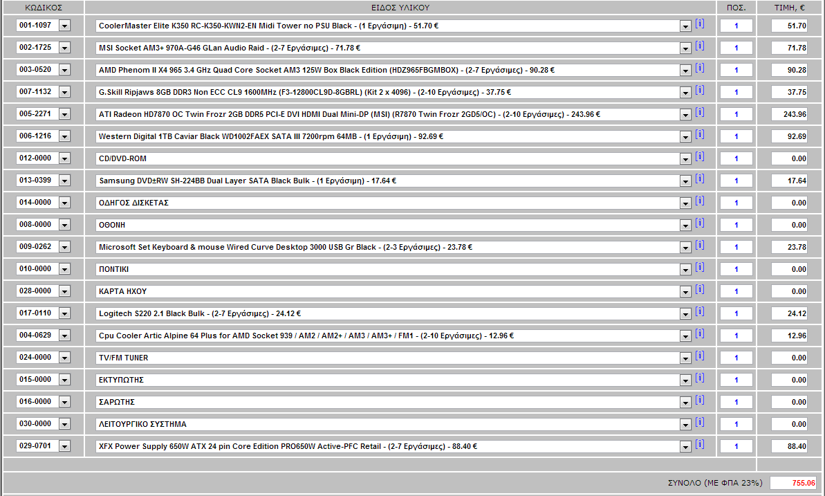 XMorsX Δημοσ. 16 Νοεμβρίου 2012 Δημοσ. 16 Νοεμβρίου 2012 Οριστε η συνθεση απο το e-shop με μικρες αλλαγες, φθηνοτερο και καλυτερο στα σημεια πιστευω. Πιο οικονομικο δεν συμφερει όσον αφορα την αξια του και δεδομενου οτι θα παιζεις παιχνιδια.