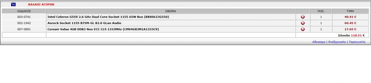 XMorsX Δημοσ. 27 Νοεμβρίου 2012 Δημοσ. 27 Νοεμβρίου 2012 Οριστε στα 220 ευρω: CPU: http://www.visionstudio.gr/prodinfo.asp?id=31758&cat=2&sub=undefined&pmanuf=undefined&sort=undefined&step=undefined Mobo: http://www.visionstudio.gr/prodinfo.asp?id=31834&cat=3&sub=383&pmanuf=undefined&sort=undefined&step=undefined RAM: http://www.visionstudio.gr/prodinfo.asp?id=22053&cat=4&sub=undefined&pmanuf=undefined&sort=undefined&step=3 1