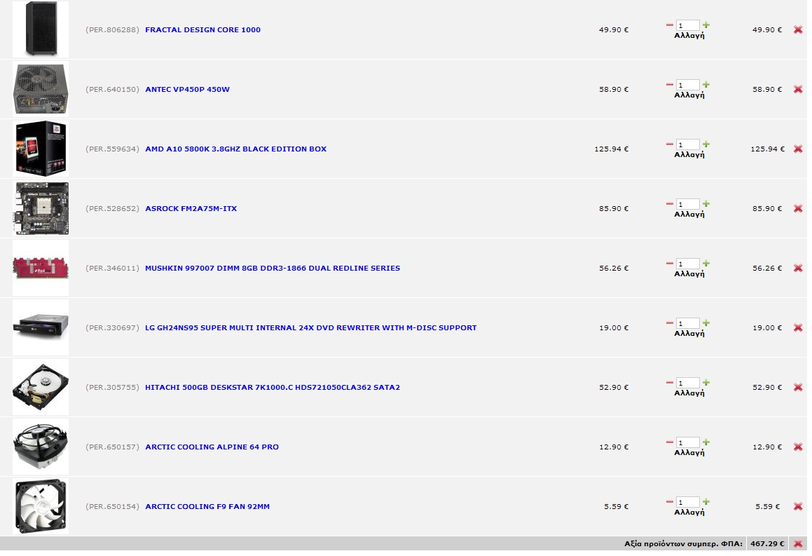 XMorsX Δημοσ. 27 Νοεμβρίου 2012 Δημοσ. 27 Νοεμβρίου 2012 Οριστε μια συνθεση στα 520 ευρω απο e-shop. Δεν επεσα σε φθηνοτερα parts γιατι όπως ειπες σε ενδιαφερει η ποιοτητα των κομματιων. E-SHOP.GR.htm 1