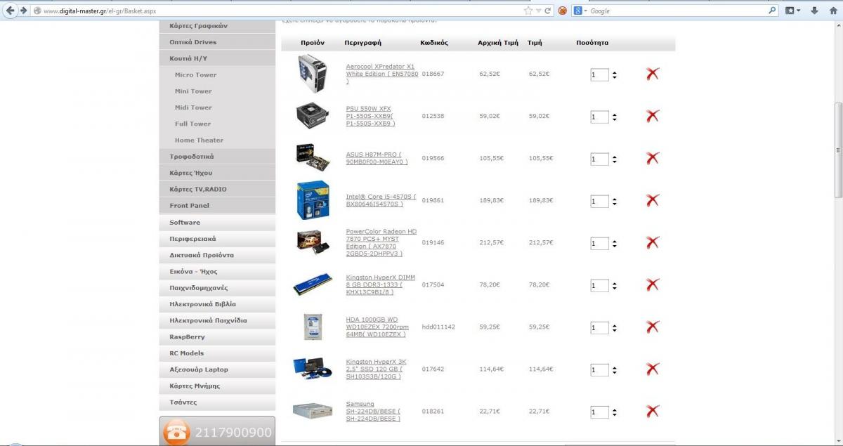 Fulgore1 Δημοσ. 25 Σεπτεμβρίου 2013 Δημοσ. 25 Σεπτεμβρίου 2013 Λοιπον η συνθεση σου φενεται.2 πραγματα που παρατηρω εχεις βαλει πρωτον κλειδωμενο Intel και δευτερον δες τι καρτα εβαλα εγω παραπανω και τι καρτα χωρεσε στην συνθεση σου +ψυκτρα αλλα ας σου βγαλω και μια συνθεση με Intel. Cpu http://www.digital-master.gr/el-gr/Products.aspx?SearchFor=4670 199ευρο (μπορεις να δεις και τον 4570 17ευρο φτηνοτερος) Μητρικη http://www.digital-master.gr/el-gr/Products.aspx?SearchFor=asus+h87+plus 98ευρο Ram http://www.digital-master.gr/el-gr/Products.aspx?ElementID=cc891ecb-eee1-4c04-835d-8eefb4cfc580 64ευρο SSD http://www.digital-master.gr/el-gr/Products.aspx?ElementID=18af3d66-d685-49c9-904e-4687e210cd1a 84ευρο Τροφοδοτικο http://www.digital-master.gr/el-gr/Products.aspx?ElementID=2de4c1b0-c41d-466f-8d5b-30f4f1b95052 58ευρο Dvd http://www.digital-master.gr/el-gr/Products.aspx?ElementID=15d936b5-c700-4c61-ae37-5a30ece8df3c 15ευρο HDD http://www.digital-master.gr/el-gr/Products.aspx?ElementID=1d89b45c-692f-41e7-94b1-abae3f8f929d 59ευρο Case http://www.digital-master.gr/el-gr/Products.aspx?SearchFor=aerocool+xpredator+white 62ευρο Gpu http://www.digital-master.gr/el-gr/Products.aspx?SearchFor=gtx+760 255ευρο ή αν αγορασεις την καρτα γραφικων απο αλλο μαγαζι χωραει και η http://www.skroutz.gr/s/431787/Gigabyte-Radeon-HD7950-3GB.html. Συνολο 894ευρο χωρις ψυκτρα, αρα οπως μπορεις να δεις στην amd συνθεση χωραει μεσα πολυ μεγαλυτερη καρτα γραφικων. Φυσικα συγκρινεις οταν ερθει ο καιρος και διαλεγεις.