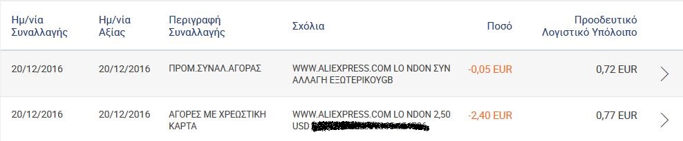 moutsa Δημοσ. 19 Δεκεμβρίου 2016 Δημοσ. 19 Δεκεμβρίου 2016 Τι ψαχνεις να βρεις τώρα όλες οι ελληνικές καρτες κρατάνε προμηθεια για συναλαγές σε ξένο νόμισμα. Και εγώ για αγορά 130 ευρω απο aliexpress χρεωθηκα συν 7 ευρώ. Για μένα βγάλε μια revolut κάρτα να κανεις την δουλεια σου.