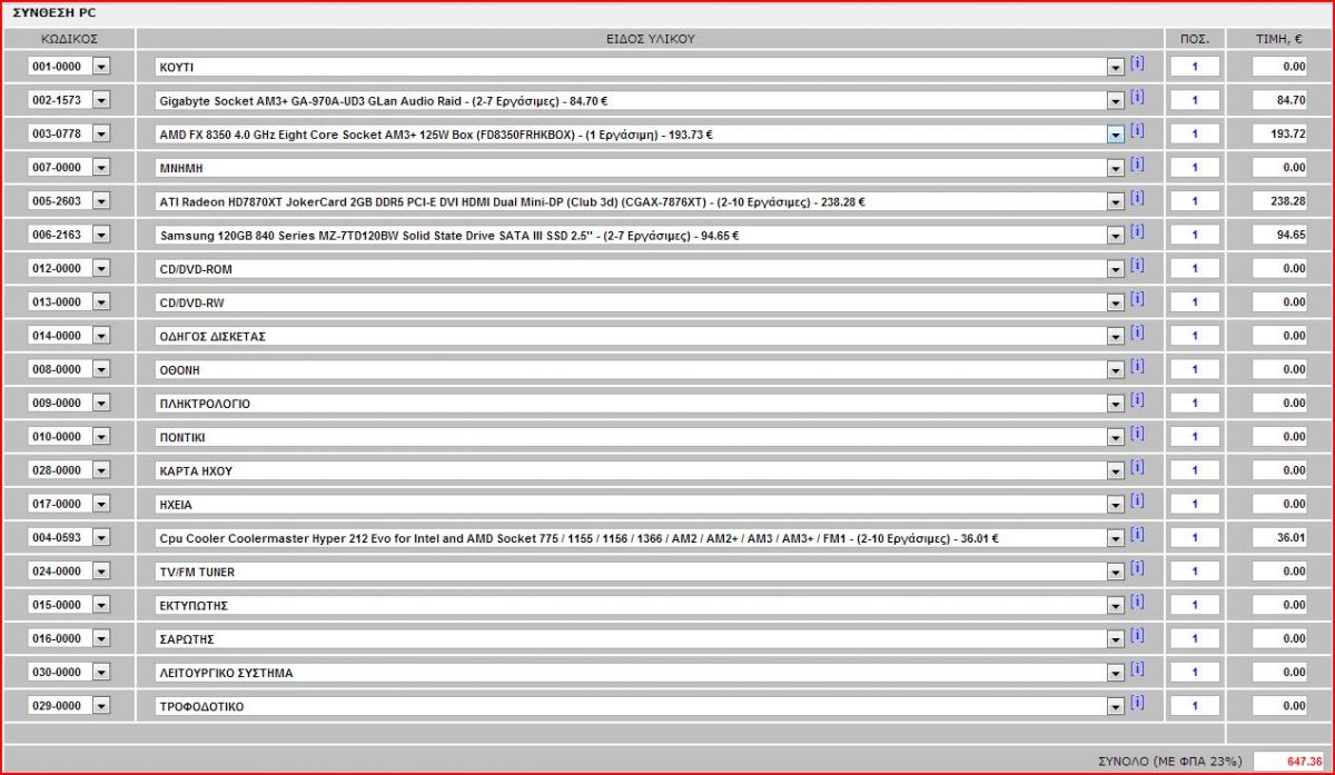nikos134 Δημοσ. 27 Μαρτίου 2013 Μέλος Δημοσ. 27 Μαρτίου 2013 Με αυτό το budget και δεδομένων αυτών που έχεις ήδη, πας σε πολύ δυνατό σύστημα. Δες από visionstudio.gr στην Θεσσαλονίκη: Καταγραφή.JPG * Σκληρό δεν έβαλα, διότι υποθέτω ότι έχεις. Αν όμως δεν έχεις, τότε: http://www.visionstudio.gr/prodinfo.asp?id=18392&cat=6&sub=12&pmanuf=150&sort=undefined&step=undefined Επίσης, μπορείς να πας σε 8320, για να βάλεις 1tb hdd, αλλά καλύτερα ο 8350. το ξέχασα διαθέτουμε σκληρους και ssd οπότε δεν χρειάζεται..