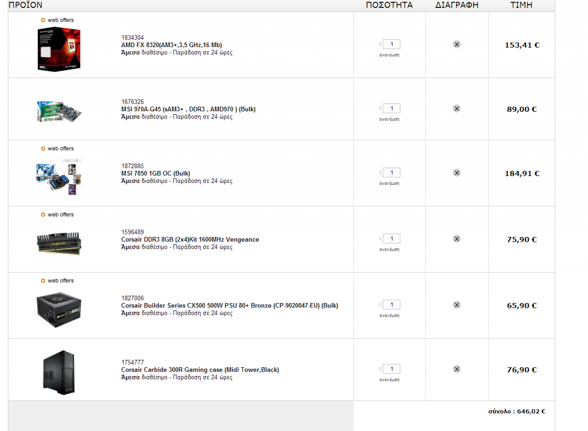 CoolerMaster Δημοσ. 10 Αυγούστου 2013 Δημοσ. 10 Αυγούστου 2013 Πως το βλεπετε το συστημα αυτο?Η μητρικη ειναι συμβατη με τον επεξεργαστη(αν εχετε να προτεινετε καποια αλλη φθηνοτερη)?Σκληρους δισκους εχω..Το θελω για γενικη χρηση,λιγο gaming,μουσικη,ταινιες,internet..Δεν θελω κατι τρελο σε gaming απλα καλο. Περιμενω αποψεις.Ευχαριστω.