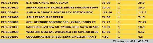 stavrosss Δημοσ. 16 Απριλίου 2014 Δημοσ. 16 Απριλίου 2014 Έχω το σύστημα που επισυνάπω στη φωτογραφια και σκέφτομαι να αγοράσω κάποια ξεχωριστή κάρτα γραφικών. Οθόνη έχω μια Samsung 226BW με 1680X1050 ανάλυση.Ποια μου προτείνετε που να μην είναι overkill για τον επεξεργαστή μου και να μη χρειάζεται να αγοράσωκαινούριο τροφοδοτικό αν είναι δυνατόν...Σκεφτόμουν αυτή http://www.e-shop.gr/product?id=PER.513640 ή αυτή http://www.e-shop.gr/product?id=PER.513639 αλλά δεν έχω ιδέα αν θα κερδίσω κάτι σε επιδόσειςκαι αν το τροφοδοτικό μου επαρκεί. Κάποια άλλη ιδέα?Ευχαριστώ.