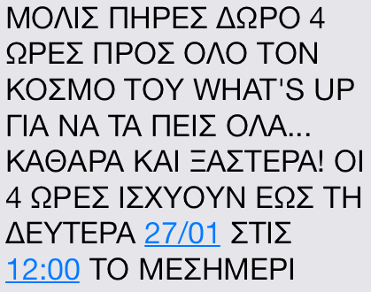Psycho13 Δημοσ. 25 Ιανουαρίου 2014 Δημοσ. 25 Ιανουαρίου 2014 Στείλε στο 1330 το μηνυμα "4" (χωρίς εισαγωγικά) 3