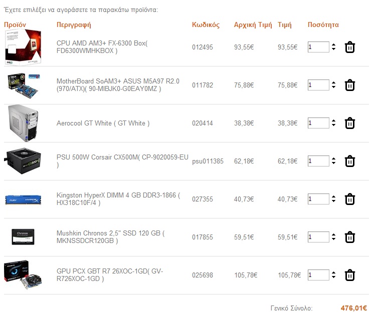 maverik13 Δημοσ. 19 Μαΐου 2014 Μέλος Δημοσ. 19 Μαΐου 2014 Προσωπικα θα πηγαινα εδω: 265.jpg Με ssd πεφτεις σε 260Χ (και περισσοτερο εκτος budget): ssd+260x.jpg Διαλεξα αλλο καταστημα γιατι μου "ξινιζουν" λιγο οι τιμες του eshop. (http://www.digital-master.gr/) Υπερ-χρησιμες μετρησεις. Ο φιλος μας κοιταζει μεταξυ "βαρβατων" gpu και δεν μπορει να επιλεξει. Ναι, αλλα εγω προτεινω/σκεφτομαι με καινουριο hardware οταν μιλω για αγορα. Και ο φιλος μας για να στηνει συστημα με νεα κομματια εξ ολοκληρου και οχι μεταχειρισμενα μαλλον συμμεριζεται τον τροπο που σκεφτομαι. Ετσι το σκεφτηκα λοιπον. Στο οτι θα χρειαστει αλλαγη ο επεξεργαστης δεν στεκεσαι, στεκεσαι στο οτι μια μητρικη των 50€ επαρκει για εναν i7. να σε ευχαριστω για την ωρα που ξοδεψες για να μου τα προτηνεις και εχω να σου πω πως πανω κατω ειχα αυτο το pc στο νουμου εκτος την καρτα γραφικων το οποιο ειναι το ενα απο τα 2 που σκεφτομαι.. και ηρεμα ρε παιδια απλα προσπαθω με την βοηθεια σας να στησω ενα καλο pc με ενα μικρο bugdet γιατι δεν εχω παρει ποτε κατι καινουργιο εδω και 15 χρονια και ειμαι συνεχεια με κατι κοματια απο εδω και απο εκει ... παντος για να καταληξω ειμαι αναμεσα σε 2 επιλογες ( μνημη τροφοδοτικο κουτι και καρτα γραφικων ειναι οτι εχω ποιο πανω) 1η επιλογη επεξεργαστης http://www.e-shop.gr/amd-athlon-x4-760k-380ghz-fm2-black-edition-box-p-PER.559664 μητρικη http://www.e-shop.gr/asrock-fm2a75-pro4-retail-p-PER.528701 2η επιλογη επεξεργαστης http://www.e-shop.gr/amd-fx-6300-35ghz-6-core-box-p-PER.559644 μητρικη http://www.e-shop.gr/asus-m5a97-r20-p-PER.522975 και τα δικα μου τα πεινα σχολια ειναι οτι στη πρωτη επιλογη ποιο λιγα λεφτα μια καλη μητρικη που εχει και pci express 3 sta 3.8 αλλα 4πυρινος και στην δευτερη εχω διαβασει οτι και τα 2 ειναι παρα πολυ καλα κοματια απλα με χαλαει (δεν ξερω αν πρεπει) οτι η μητρικη εχει pci express 2