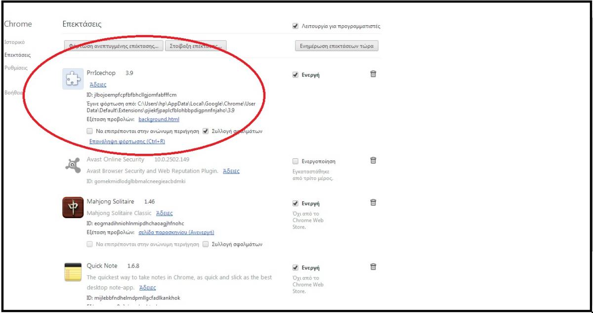 thomasG4 Δημοσ. 13 Νοεμβρίου 2014 Δημοσ. 13 Νοεμβρίου 2014 σε πορνο-site δεν μπαίνω ( τουλάχιστον εγω , οσο χρησιμοποιώ τον υπολογιστή ) ωστόσο , 2 φορές την ημέρα , αναγκάζομαι να μπαίνω στο μενού επεκτάσεις του chrome και να διαγράφω το κυκλωμένο της εικόνας . Είναι μια επέκταση , που συνέχεια μου γεμίζει με διαφημίσεις τις σελίδες που ανοίγω . Υπάρχει κάποιος τρόπος να "μπλοκάρω" το να μπαίνει αυτόματα από μόνη της αυτή η επέκταση ; Κάνε scan με το AdwCleaner. Δεν θα σε ξανά ενοχλήσει μετά.