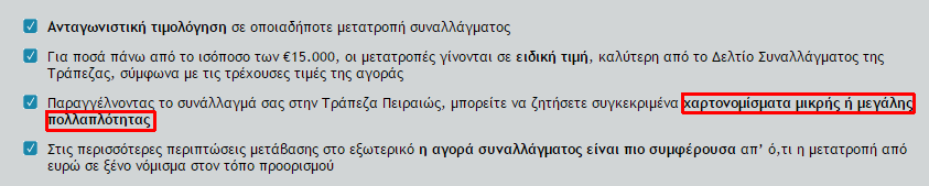 gokuthelegend Δημοσ. 14 Νοεμβρίου 2014 Δημοσ. 14 Νοεμβρίου 2014 Ήθελα να αγοράσω κάτι σε δολάρια Αμερικής και κοιτούσα το κόστος συναλλάγματος. Εντελώς τυχαία έπεσα στο παρακάτω, στην ιστοσελίδα της Τράπεζας Πειραιώς. Τι σημαίνει το "χαρτονομίσματα μικρής ή μεγάλης πολλαπλότητας"; Η αγορά θα γίνει με κάρτα Visa και όχι με πραγματικά χρήματα, αλλά έπεσε το μάτι μου σε αυτό και θα ήθελα να μάθω τι είναι.