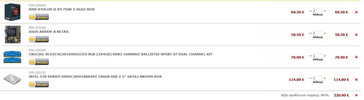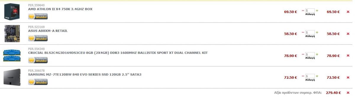 AMD Expert Δημοσ. 22 Αυγούστου 2014 Δημοσ. 22 Αυγούστου 2014 Η δική μου πρόταση :Και μαζί να βάλει είτε :1) http://www.you.gr/proionta/pc-parts/exartimata-desktop-pc-anavathmisis/kartes-grafikon/vga-amd-asus-r7265-dc2-2gd5(ASUS R7 265 - Δωρεάν Μεταφορικά,φθηνότερα από το e-shop) Εντός Budget 2) http://www.e-shop.gr/asus-r9-270-r9270-dc2oc-2gd5-2gb-gddr5-pci-e-retail-p-PER.513644(ASUS R9 270 - Δωρεάν Μεταφορικά,την βρίσκεις φθηνότερα ένα 10άρικο αλλά με 6-7 ευρώ μεταφορικά) εκτός budget,αξίζει όμως (πιστεύω) Και έπειτα ας βάλει και 4gb ram και αν θελήσει oc ή τον ενοχλεί ο θόρυβος να βάλει και μια ψύκτρα. Πιστεύω είναι μια πολύ καλή πρόταση για τα χρήματα. SSD μην πάρεις τον Intel 530,έχει την μισή ταχύτητα σε Random I/O και αρκετά λιγότερη χωρητικότητα 1