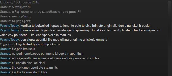 trayban Δημοσ. 21 Απριλίου 2015 Δημοσ. 21 Απριλίου 2015 να χαίρεστε το επίπεδο σας ορισμένοι ξεφτίλες στο στιμ γκιφτς ο ξεφτίλας λέγεται kamenipsixi, 2