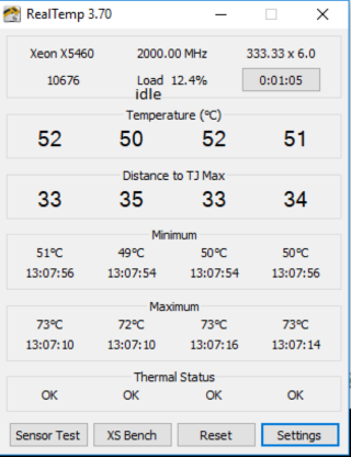 BlueBlood7 Δημοσ. 1 Ιουνίου 2018 Δημοσ. 1 Ιουνίου 2018 (επεξεργασμένο) Στον ΧΕΟΝ που έχεις το tjmax είναι 85 και όχι 100. Άρα υπολόγιζε 15 βαθμούς πιο κάτω απ ότι λένε τα προγράμματα. Κατέβασε το real temp, πάνε στα settings, κάνε κλικ στο Set Tj Max και άλλαξε τις τιμές των 100 σε 85. Θα παρακολουθείς τις θερμοκρασίες από το Real Temp. Τον ΧΕΟΝ τον πήρες έτοιμο ή έκοψες τα αυτάκια? Επεξ/σία 1 Ιουνίου 2018 από BlueBlood7 1