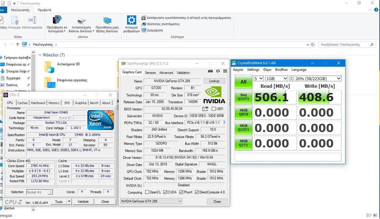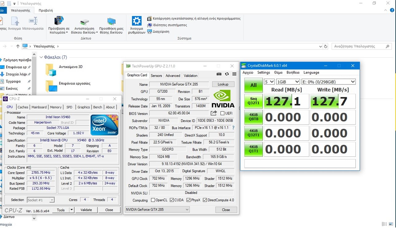 Qless Δημοσ. 10 Οκτωβρίου 2018 Δημοσ. 10 Οκτωβρίου 2018 (επεξεργασμένο) Tελικά επισκεύασα την p5w dh deluxe που βρήκα είχε πολλά θεματα (αλλάχτηκε ένα mosfet καμμένο και αφού μπούταρε, όλοι οι ηλεκτρολυτικοί αφού αρκετοί είχαν φουσκώσει) και μπήκε ο xeon X5460 underclocked στα 2,8 (κατάφερα να βρω ένα αξιοπρεπή συμβιβασμό στη συχνότητα από το 2,53ghz που μπορούσε να δουλέψει με τον xeon αρχικά) αφού εκεί είναι σταθερός με το 975Χ σε αυτή την μητρική, και γιατί έμπλεξα με αυτή την μητρική γι αυτό. Δυο ssd 120gb σε stripe για λειτουργικό και προγράμματα, και δυο μηχανικοί 7200rpm σε stripe για εργασία με αρχεία βίντεο κυρίως....το συστηματάκι αν και δεινόσαυρος πετάει κυριολεκτικά Επεξ/σία 10 Οκτωβρίου 2018 από Qless 2