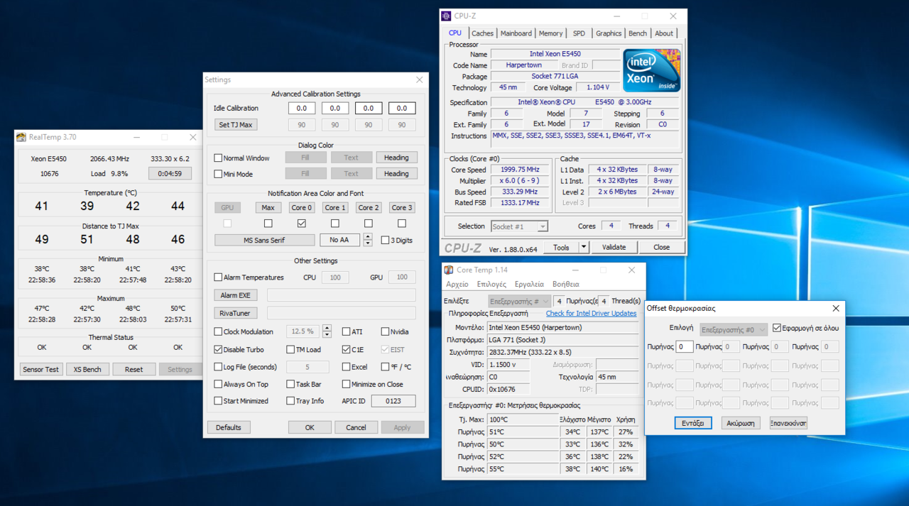 sotgun86 Δημοσ. 13 Ιουνίου 2019 Δημοσ. 13 Ιουνίου 2019 Kαλημέρα Έβαλα εναν Xeon E5450 σε μητρική Foxconn G41MXE με μονταρισμένο bios update. Στο real temp το TJMax ηταν default στα 90. Να το πάω 85? Και στο core temp -15 για να βλέπω σωστές θερμοκρασίες? δουλεύει με αυτή την ψύκτρα https://www.skroutz.gr/s/8179182/Deepcool-Gammaxx-200T.html ειναι οκ αυτες οι θερμοκρασίες?