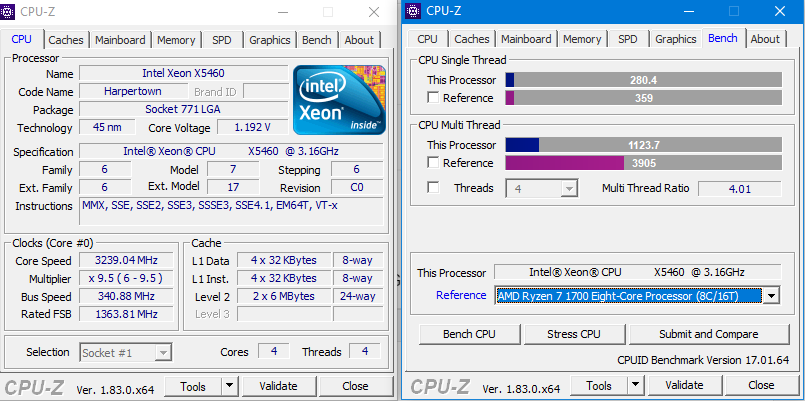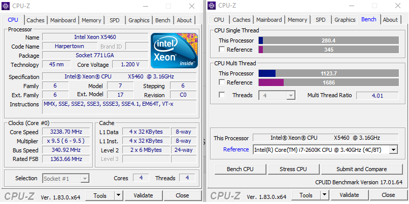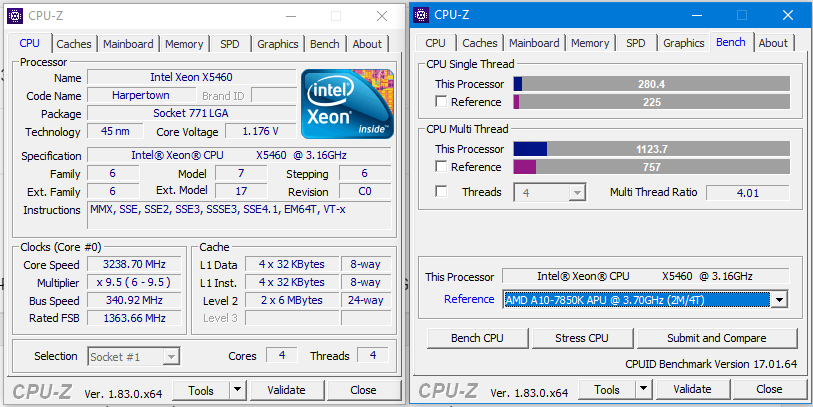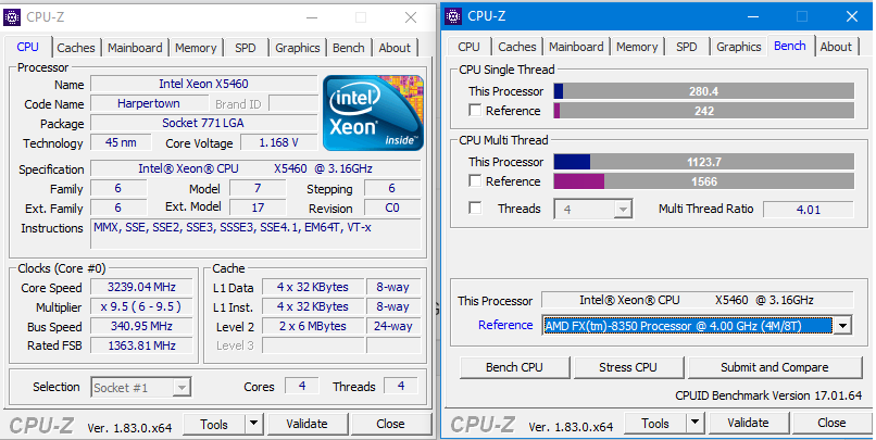 Qless Δημοσ. 10 Μαρτίου 2018 Δημοσ. 10 Μαρτίου 2018 (επεξεργασμένο) Ορισμένα ενδιαφέροντα benches του cpuz, εδώ ο xeon x5460 σχεδόν στην στοκ συχνότητα λειτουργίας του (g31 μητρική) στέκεται αξιοπρεπέστατα για την ηλικία του ειδικά με το υψηλό single core performance του υπερέχοντας καθαρά έναντι των FX τουλάχιστον και αρκετά κοντα σε sandy bridge, με καλύτερη μητρική σίγουρα θα είχε και πολύ καλύτερες επιδόσεις ο xeon, πάντως για 10 ετών σύστημα είναι απίστευτος Επεξ/σία 10 Μαρτίου 2018 από Qless 3
