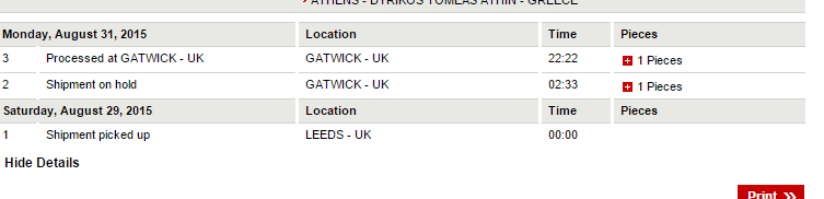 x+y=z Δημοσ. 1 Σεπτεμβρίου 2015 Δημοσ. 1 Σεπτεμβρίου 2015 Εχω κανει μια παραγγεία απο sportsdirect μεσω paypal balance. Σημερα μου εβγαλε το μηνυμα "shipment on hold" στην dhl. Εχω στειλει μηνυμα και στις δυο εταιρειες, αλλα δε μου εχει απαντησει καμια μεχρι στιγμης... Τι μπορει να παιζει; Εχω κανει μια παραγγεία απο sportsdirect μεσω paypal balance. Σημερα μου εβγαλε το μηνυμα "shipment on hold" στην dhl. Εχω στειλει μηνυμα και στις δυο εταιρειες, αλλα δε μου εχει απαντησει καμια μεχρι στιγμης... Τι μπορει να παιζει; Ακυρο. Μολις εβγαλε ενημερωση (με καθυστερηση βεβαια οπως φαινεται και στην εικονα)... Ελπιζω να μη μου βγαλει κατι αλλο...