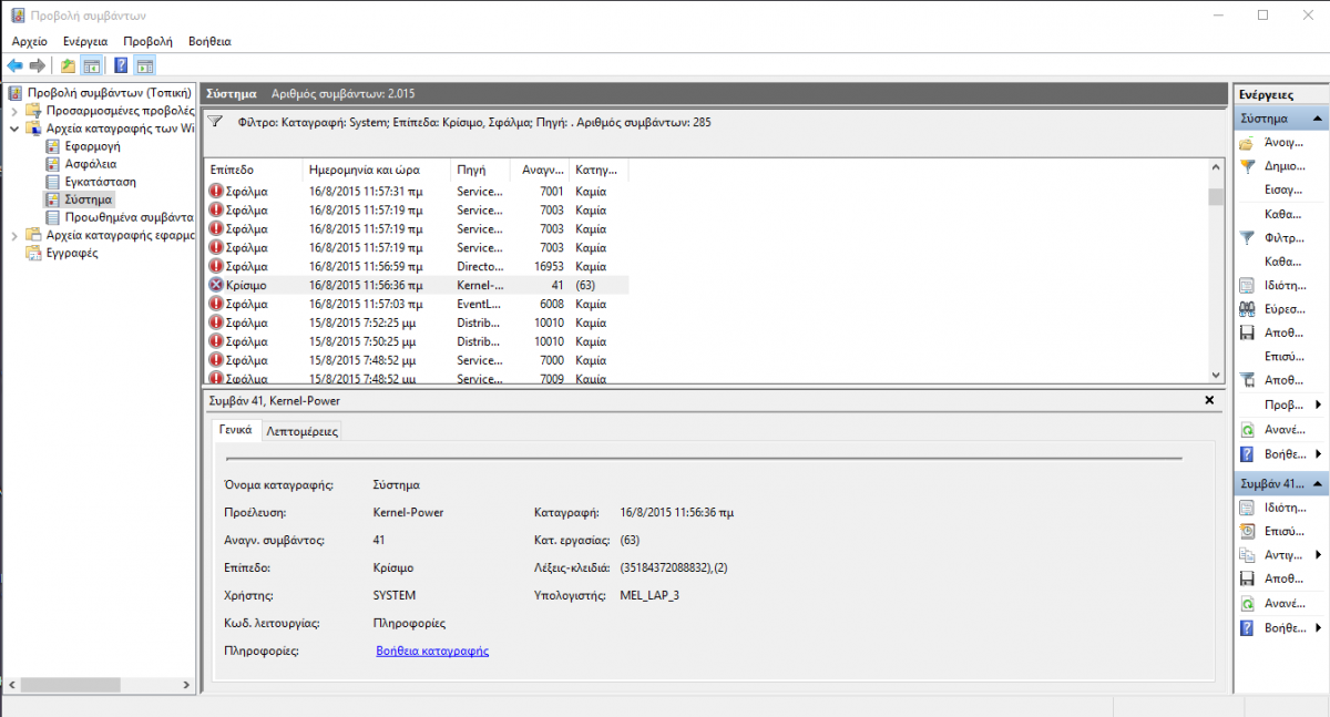 vaggospat13 Δημοσ. 16 Αυγούστου 2015 Δημοσ. 16 Αυγούστου 2015 κατηγοριοποίησε τα σφαλματα με βαση την ημερομηνία και ωρα και δες ποιο-παια σφαλματα ειναι τα πρωτα που εμφανίζονται όταν κανεις εκκίνηση και βγαζει μαυρη οθονη. Το κρίσιμο 41 βγαινει όταν δεν κάνεις σωστό τερματισμό οπότε αυτο που ψάχνεις είναι καπου πιο πριν χρονικά. τι συστημα εχεις αλληθεια; και εκανες καθαρη εγκατασταση ή όχι;
