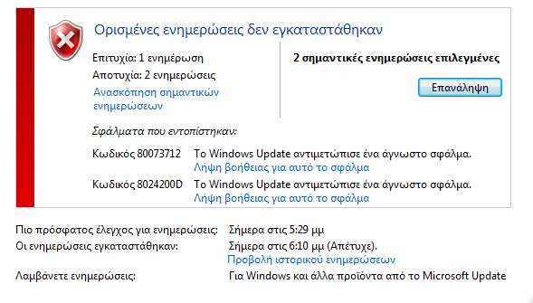 trujillo2008 Δημοσ. 14 Σεπτεμβρίου 2015 Δημοσ. 14 Σεπτεμβρίου 2015 http://windows.microsoft.com/el-gr/windows7/windows-update-error-8024200d http://windows.microsoft.com/el-gr/windows/windows-update-error-80073712#1TC=windows-7 εχεις ριξει καμμια ματια εδω? δεν ξερω βεβαια κατα ποσο βοηθανε