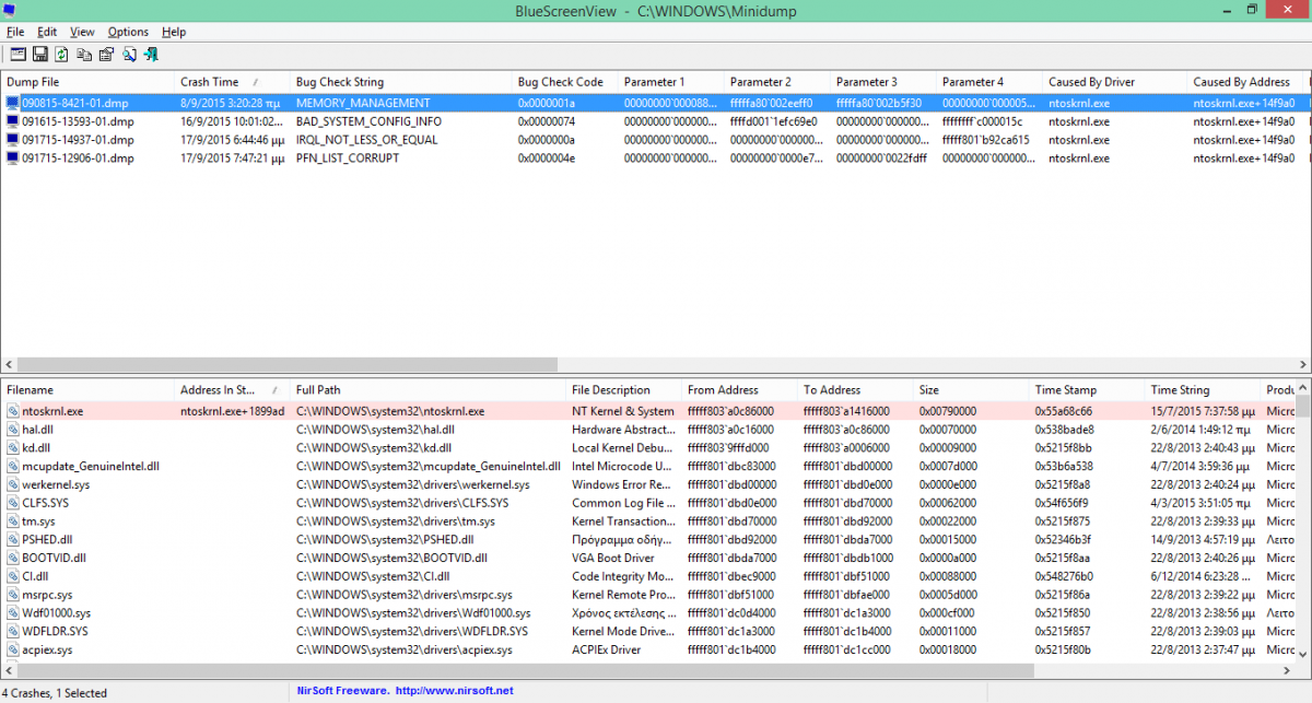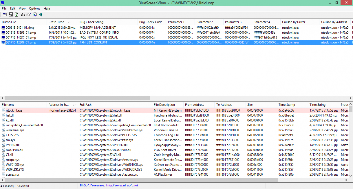 J0HN Δημοσ. 17 Σεπτεμβρίου 2015 Δημοσ. 17 Σεπτεμβρίου 2015 Καλησπέρα σας ! Ο υπολογιστής μου ξεκινώντας πριν από μια βδομάδα κάνει καθημερινά BSOD. Την πρώτη φορά που ξεκίνησε ήμουν στο όριο να κάνω format και την τελευταία στιγμή λειτούργησε η επιδιόρθωση κατά την εκκίνηση. Βέβαια στην ουσία ξαναπέρασα τα περισσότερα και ίσως έπρεπε από τότε να το έχω κάνει το format αλλά τώρα δεν θέλω να ξανακατεβάζω από το origin 50GB χωρίς λόγο. Γι'αυτό θέλω τη γνώμη σας αν το θέμα είναι στο λειτουργικό ή αν παίζει να είναι hardware. Ο λόγος που ανοίγω σήμερα το thread είναι ότι από σήμερα το σκηνικό έχει αλλάξει. Μέχρι πρότινος είχα BSOD με error το pfn_list_corrupt για το οποίο μέχρι σήμερα δεν είχε δημιουργηθεί ποτέ κανένα .dmp file. Από σήμερα όμως έχω και 2 νέα διαφορετικά errors. Παραθέτω εικόνες από την ανάλυση τους. Από τα λίγα που ξέρω το kernel αφορά την "επικοινωνία" υλικού-λογισμικού οπότε πραγματικά δεν ξέρω τι μπορεί να φταίει. EDIT: Στο παρελθόν είχα κάποια BSOD. Το θέμα από ό,τι κατάλαβα το προκαλούσε ένας εξωτερικός σκληρός από τον οποίο έπαιζα Battlefield. Επίσης είχα τρέξει το memtest το οποίο μια το πέρναγα μία κάτι έβρισκε, αλλά επειδή οι μνήμες μου βρίσκουν στην κάρτα γραφικών δεν είναι και ό,τι πιο εύκολο να τις μπαινοβγαζω.