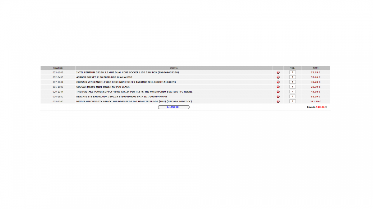 adtakhs Δημοσ. 25 Σεπτεμβρίου 2015 Δημοσ. 25 Σεπτεμβρίου 2015 Προϊόν Περιγραφή Τιμή τεμ. Ποσότητα Σύνολο 29588 Western Digital Caviar Blue 1TB, 3.5, SATA3, 64MB, 7200rpm (WD10EZEX) SKU : WD10EZEX 55,97 € 42892 Cougar Spike, Mini ATX Case, No PSU, 1xUSB 3.0, 1xUSB 2.0, Audio in/out, Black (SPIKE 5SS7) SKU : SPIKE 5SS7 25,37 € 45034 Kingston HyperX FURY Black Series 8GB (2x 4GB) DDR3 1866MHz (HX318C10FBK2/8) SKU : HX318C10FBK2/8 52,30 € 45608 Gigabyte F2A78M-D3H FM2+ 4x DDR3 MATX 57,86 € 47184 Corsair VS450 450 Watt PSU (CP-9020096-EU) SKU : CP-9020096-EU 47,98 € 47701 AMD Athlon X4 860K FM2+, 3.7GHz, Quad Core, Box (AD860KXBJABOX) SKU : AD860KXBJABOX 80,27 € 50050 Corsair Force LS 120GB, 2.5-inch SATA3 SSD (CSSD-F120GBLSB) SKU : CSSD-F120GBLSB 55,46 € 50799 Gigabyte Radeon R7 360 Ultra Durable 2, 2GB GDDR5, 128-bit, DVI, HDMI, DP (GV-R736OC-2GD) SKU : GV-R736OC-2GD 125,63 € Σύνολο προϊόντων (με ΦΠΑ) ------------------------------------------------------ 500,84 € από MG MANAGER ή Από visionstudio.gr Αν έχεις κάποιον παλαιό σκληρό δίσκο ώστε να τον βάλεις για αποθήκη στο σύστημα, άλλαξε την R7 260 και για κάρτα γραφικών βάλε μια δυνατότερη. Πχ. R7 370 2GB DDR5 http://www.skroutz.gr/c/55/kartes-grafikwn-vga.html?keyphrase=R7+370+2GB+DDR5 την R9 380 2GB DDR5 (με + 50€ στο budget για να κάνεις πραγματικά gaming συστηματάκι) http://www.skroutz.gr/s/7097142/MSI-Radeon-R9-380-2GB-R9-380-2GD5T-OC.html 2