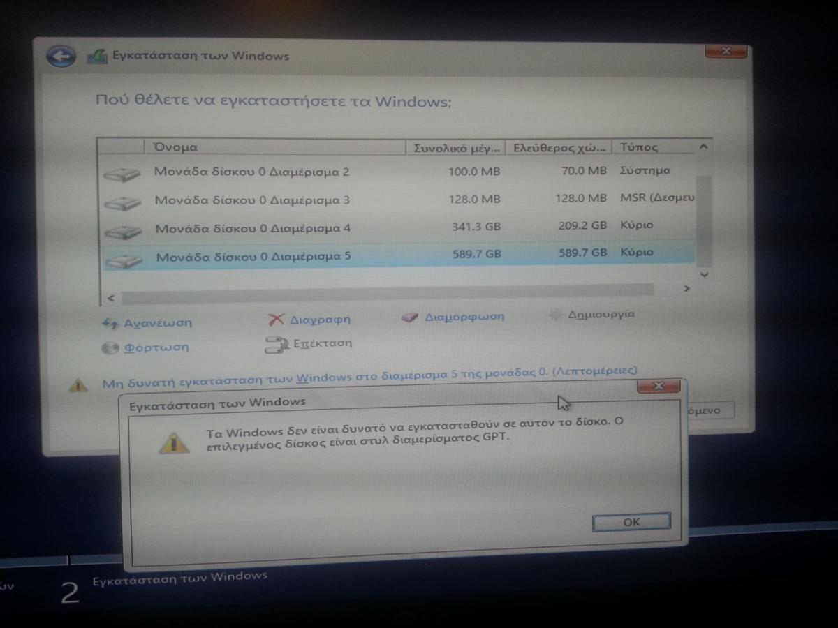 Επισκέπτης Δημοσ. 6 Οκτωβρίου 2015 Δημοσ. 6 Οκτωβρίου 2015 Κάνε backup τα αρχεία σου και στην συνέχεια θα πρέπει να κάνεις format τον δίσκο και να τον αλάξεις σε Basic MBR από GPT που είναι τώρα (καλύτερα κατα τη γνώμη μου). Μετά θα μπορέσεις να συνεχίσεις την διαδικασία κανονικά! Για να το κάνεις αυτό θα πρέπει να βγάλεις τον δίσκο, να τον συνδέσεις εξωτερικά με άλλο μηχάνημα, να κατεβάσεις κάποιο απ τα διάφορα προγράμματα που κυκλοφορούν (διαχείρισης δίσκου) και να κάνεις αυτή την μετατροπή.