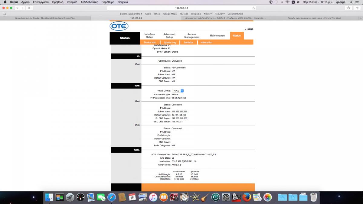 poulinos Δημοσ. 15 Οκτωβρίου 2015 Δημοσ. 15 Οκτωβρίου 2015 Και χωρίς splitter το ίδιο. To modem σε annex b είναι. Υπάρχει άλλη ρύθμιση μέσα από το interface του modem που να επηρεάζει το αν χρονιζει ή όχι? (σύμφωνα με το εγχειρίδιο όχι) edit: εφτιαξε το ιντερνετ . βαζω και ενα printscreen με τα στατιστικα 11111.jpg συνηθως δεν υπαρχει αλλη ρυθμιση περα απο το να παιξεις με το multimode ,adsl2+,adsl2 κτλ. μαλλον δεν σε ειχε κατασκευασει ο οτε για να λες οτι επαιξε, μαλλον χωρις να κανεις τιποτα.