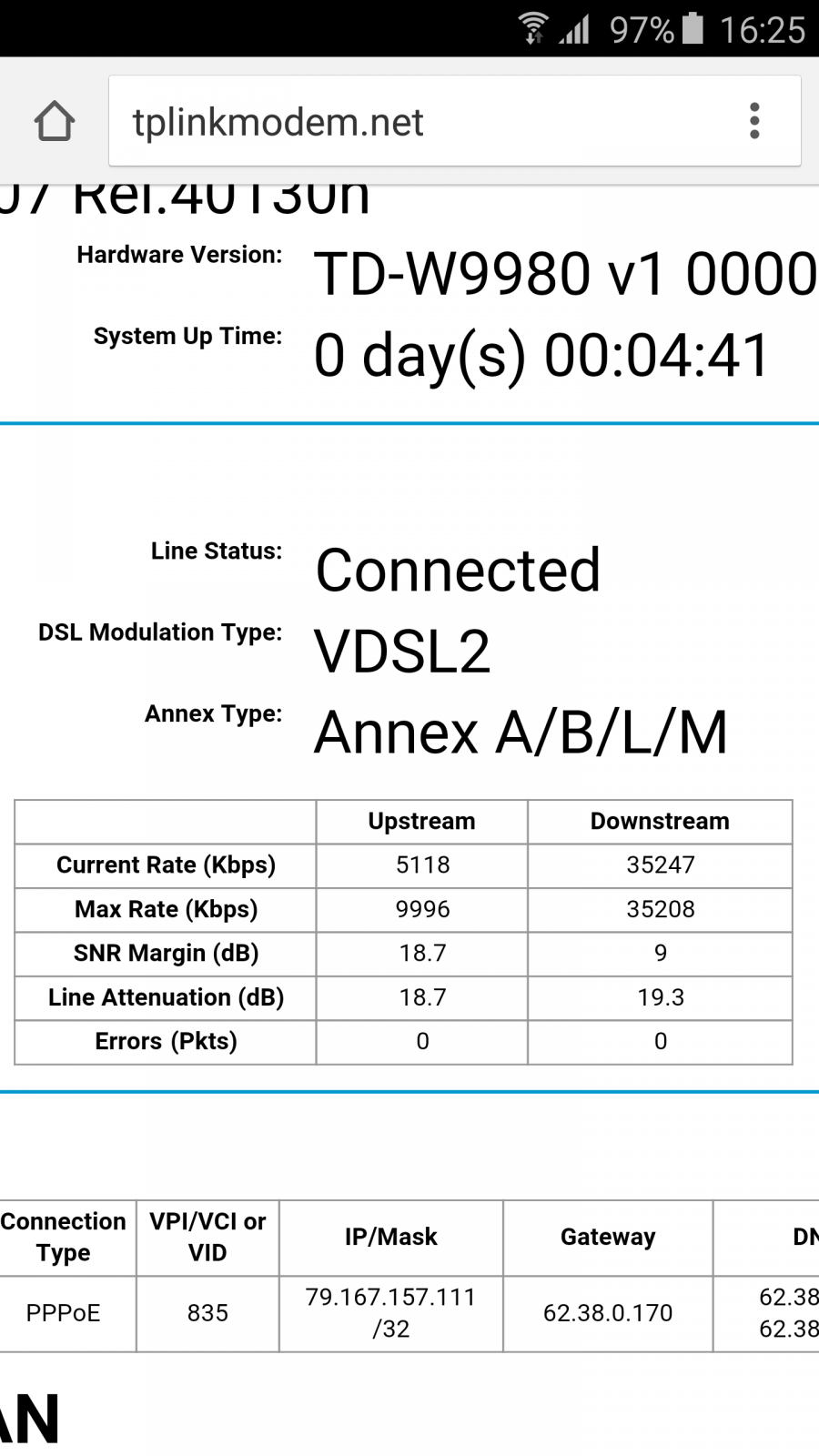 heavyrain Δημοσ. 19 Νοεμβρίου 2015 Μέλος Δημοσ. 19 Νοεμβρίου 2015 Μετα απο εναμησι μηνα μου συνδεθηκε το vdsl. Δεν ελαβα μηνυμα να συνδεσω το vdsl modem αλλα ειδα αποσυνδεση που δεν εχει κανει ουτε μια και καταλαβα οτι κατι εγινε απ τη vodafone. Οντως ηταν γιατι ενεργοποιησαν τη vdsl. Παραθετω τα στατιστικα της γραμμης. Εχω την εντυπωση πως πιανω λιγα δεδομενου οτι ειμαι 357 μετρα απ το αστικο κεντρο βεβαια το 19attenuation δηλωνει αποσταση γυρω στο χιλιομετρο..ξερω οτι δεν εχουν καινουρια dslam στο ιλιον.. Μπορει βεβαια ακομα να μην μου σταθεροποιησαν τη γραμμη και να κανουν μετρησεις; δεν ξερω. Το λεω αυτο λογω του οτι δεν ελαβα ακομα μηνυμα να συνδεσω το μοντεμ. Ιντερνετ ομως εω κανονικα. Θα τους παρω τηλ το απογευμα. εχεις κανεις καμια ιδεα;