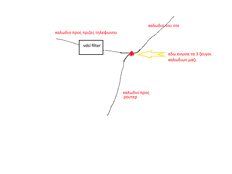 poulinos Δημοσ. 1 Δεκεμβρίου 2015 Δημοσ. 1 Δεκεμβρίου 2015 δεν θελουμε ετσι αν καταλαβα καλα το σχημα.το καλωδιο του οτε θα σκασει πανω στο splitter.απο το Phone του σπλιττερ θα φυγουν ολα τα καλωδια ειτε πισω απο τον τοιχο ειτε δεν ξερω πως να πανε στα τηλεφωνα και απο το adsl tou splitter θα φυγει το vdsl router. ετσι θα κερδισεις λιγο ακομα.το ποσο θα κερδισεις εξαρτατε απο το μηκος του καλωδιου που παει στο τηλεφωνο.οσο πιο μεγαλο τοσο περισσοτερο χανεις. αυτο που εχεις κανει δηλαδη ειναι bridge tap https://www.cyta.com.cy/mp/informational/support/files/wiring-guide-for-broadband_GR.pdf https://en.wikipedia.org/wiki/Bridge_tap