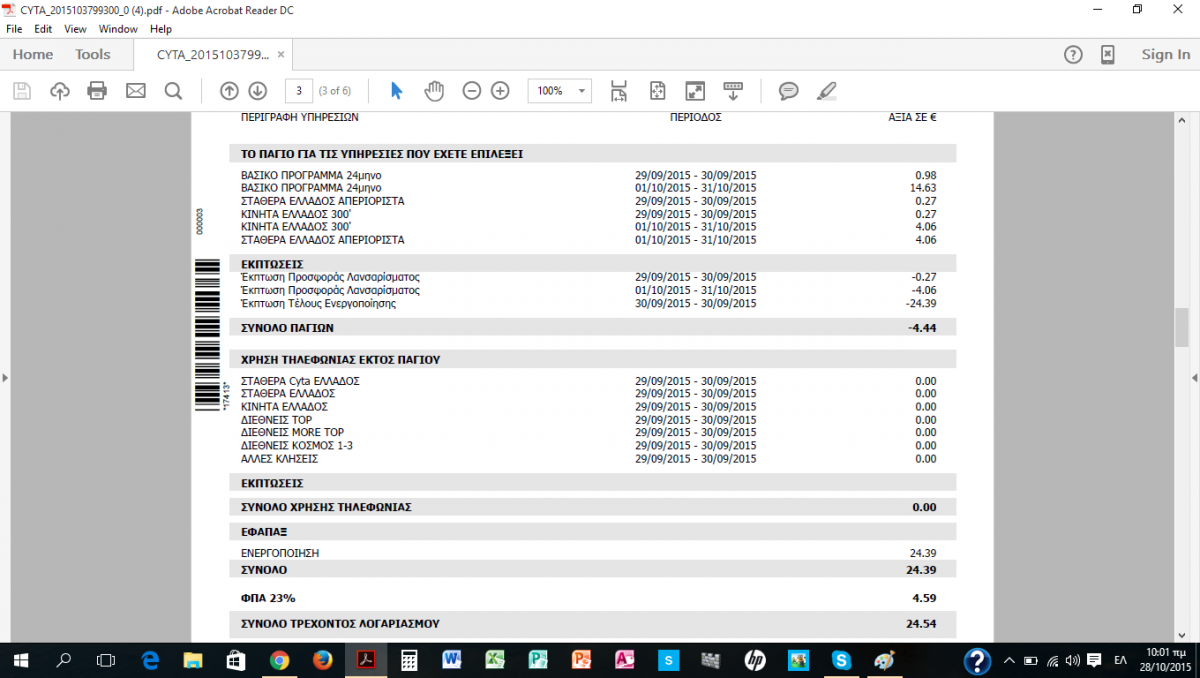 bill2015 Δημοσ. 28 Οκτωβρίου 2015 Δημοσ. 28 Οκτωβρίου 2015 αμα κανετε της πραξεις χωρις το τελος βγαινει -4,44 οτι μου χρωσταν μαζι με την ενεργοποιηση ειναι 19,94 και μαζι και το φπα συνολο 24,53 αφου το τεος το χρεωνει γιατι λει οτι ειναι τσαμπα αν δεν το εβαζε θα μου χρωστουσαν 4,44 ευρω