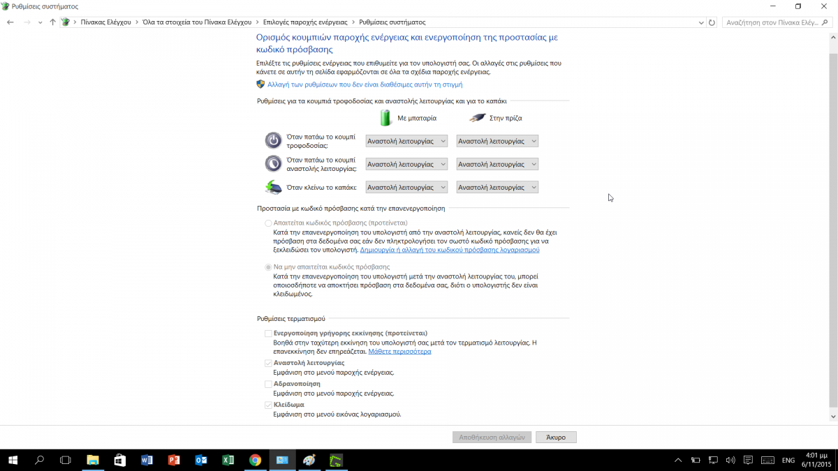 spyros4776 Δημοσ. 5 Νοεμβρίου 2015 Δημοσ. 5 Νοεμβρίου 2015 Στο οταν κλεινω το καπακι γραφει ΄΄αναστολη λειτουργειας΄΄ με μπαταρια και στην πριζα. Να το παω στον τερματισμο λειτουργιας; Λιγο πιο κατω, εκει που γραφει ρυθμισεις τερματισμου! Δες αν εχει 'τικ' εκει που γραφει γρηγορη εκκινηση! 1
