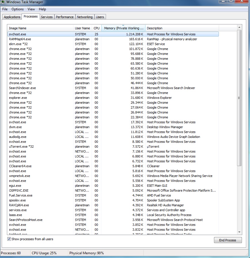 vste Δημοσ. 26 Δεκεμβρίου 2015 Δημοσ. 26 Δεκεμβρίου 2015 Όπως είσαι στο performance tab κάνε click στο resource MONITOR. Εκεί πήγαινε στο memory tab και σορταρε τα ανά mem errors. Κάποιο process θα δεις ότι χτυπάει συνέχεια errors με αποτέλεσμα να σου γεμίζει την μνήμη. Κάνε το terminate και δες αν πέφτει ή χρήση μνήμης. Στην συνέχεια ψάξε στο Google με το ονομα του process και την φράση memory leak. Στα 7 την πατάτα την κάνει συνήθως το windows update.