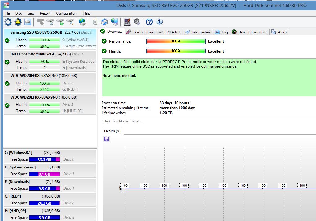 MasterX Δημοσ. 1 Φεβρουαρίου 2016 Μέλος Δημοσ. 1 Φεβρουαρίου 2016 ΟΚ.. ευχαριστω ολους καταρχην γιατι εντοπισαμε και λυσαμε το προβλημα.. Δεν είναι βλακεία. Αν είχε την επιλογή να μην τον ξυπνάει απλά δε θα δούλευε το πρόγραμμα για κανένα δίσκο. Όπως είπα και πριν πρέπει να κάνει spin up ο δίσκος για να πάρει τις μετρήσεις το πρόγραμμα και καλώς ή κακώς δε γίνεται να διαλέγει ο χρήστης ξεχωριστά ποιους δίσκους να ελέγχει και πότε. Βάλτο στις 12 αν σε εξυπηρετεί αλλά μην απενεργοποιήσεις το automatic scandisk γιατί τότε δε θα ενημερώνει τη κατάσταση τους ούτε στη έναρξη και με τόσο μεγάλο χρονικό διάστημα μπορεί να καθυστερήσεις καιρό να εντοπίσεις κάποια αλλαγή. Αν είναι να δουλεύει το πρόγραμμα κάθε 12 ώρες πάντως είναι προτιμότερο να μη τρέχει καθόλου για να μη καταναλώνει πόρους, αλλά να το τρέχεις εσύ μια στις τόσες για έλεγχο. απλα αυτο που ελεγα, ειναιοτι θα μπορουσε να ελεγχει τους δισκους οταν ανοιγουν τα Windows και οι δισκοι ετσι κι αλλιως ενεργοποιουνται ολοι.τωρα γιατους 2 σκληρους που σβηνουν, αν δεν εχουν καποιο θεμα στην αρχη, οταν θα σβησουν δεν θα υπαρξει καποια αλλαγη στο στατους τους οποτε κανενα θεμα..Αλλα αφηνω το HD Sentinel για να τσεκαρει μονιμα τους SSD και επισης να τσεκαρει τους αλλους 2 οταν ενεργοποιουνται..Ετσι κι αλλιως βλεπω οτι idle χρησιμοποιει 0% CPU και 6.5ΜΒ μνημης.. οποτε δεν μου τρωει και τιποτα πιστευω