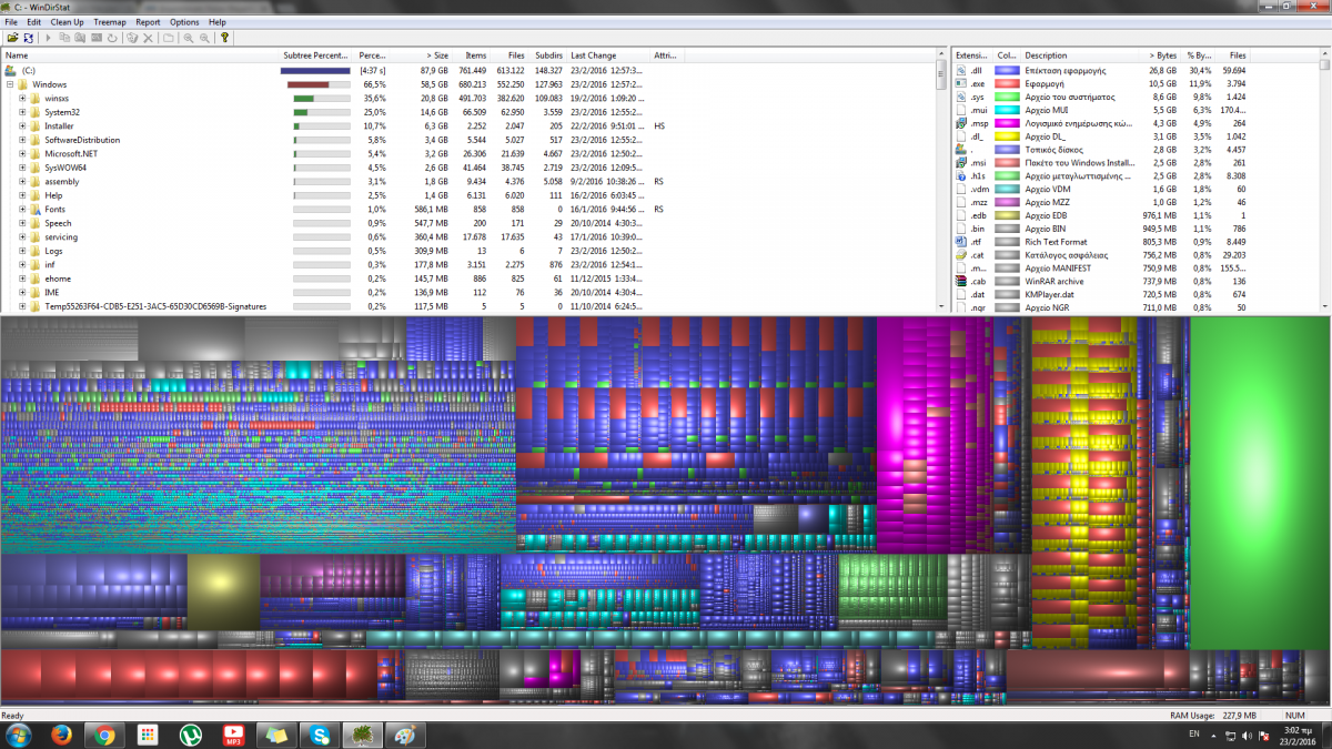 mythradyl Δημοσ. 23 Φεβρουαρίου 2016 Δημοσ. 23 Φεβρουαρίου 2016 Γειά σας παιδιά, έχω θέμα με τον σκληρό δίσκο. Όπως θα δείτε και στην φωτό μ βγάζει 55 gb τα Windows. Δεν ξέρω τι πρέπει να σβήσω και τι ν κρατήσω. Το μέγεθος είναι απαράδεκτο. Έτρεξα και το disc cleanup και εννοείται τα πάντα από το ccleaner. Boηθήστε!!!