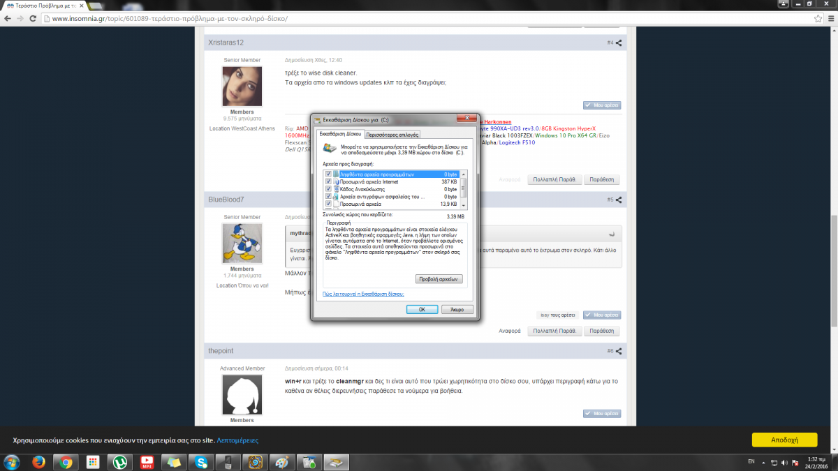 mythradyl Δημοσ. 24 Φεβρουαρίου 2016 Μέλος Δημοσ. 24 Φεβρουαρίου 2016 Αγαπητέ blueblood τα κοίταξα αυτά του isay και τα έχω ήδη κάνει.Φίλε the point έτρεξα και το cleanmgr ήδη εχθές αλλά το ξαναέκανα για να σ δείξω την φωτογραφία. Και φίλε Xristara μου εξοικονόμησε 2,4 Gb to wise disc cleaner, αλλά έχω πιο χοντρό θέμα μάλλον. Ευχαριστώ παιδιά για τισ απαντήσεις