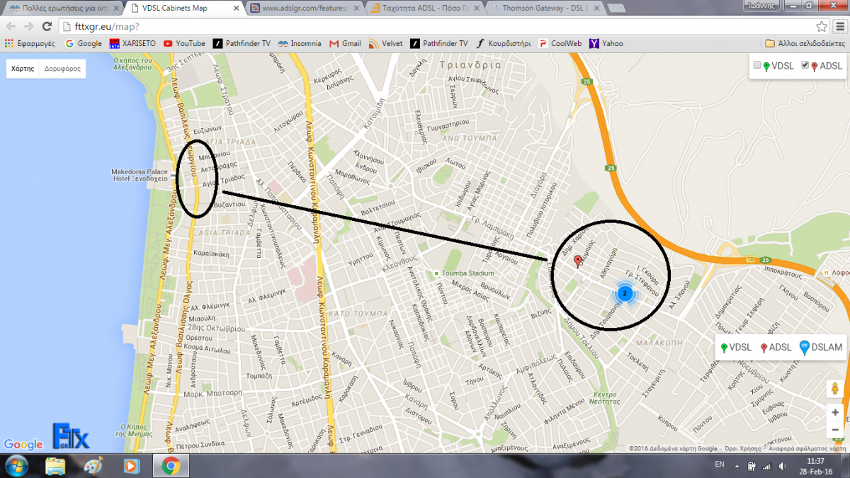 Είσαι στη Θεσ/νίκη και είτε ο χάρτης δεν έχει ενημερωθεί είτε δεν έχει επεκταθεί το νέο δίκτυο του ΟΤΕ. Πιθανόν να συμβαίνει το 1ο γιατί βλέπω πολλές νέες καμπίνες στην Καλαμαριά και, επομένως, μπορεί να έχουν εγκατασταθεί νέες και στην περιοχή σου. Ψάξε στη γειτονιά σου για νέες καμπίνες.