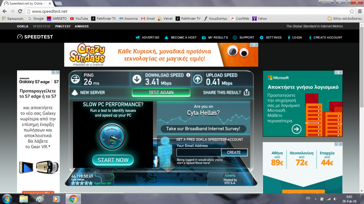 4.Έκανα internet test και μου βγάζει αυτά που θα δείτε στην φωτογραφία παρακάτω.Συγνώμη, το 24 με το 3.4 δεν έχει τεράστια διαφορά?