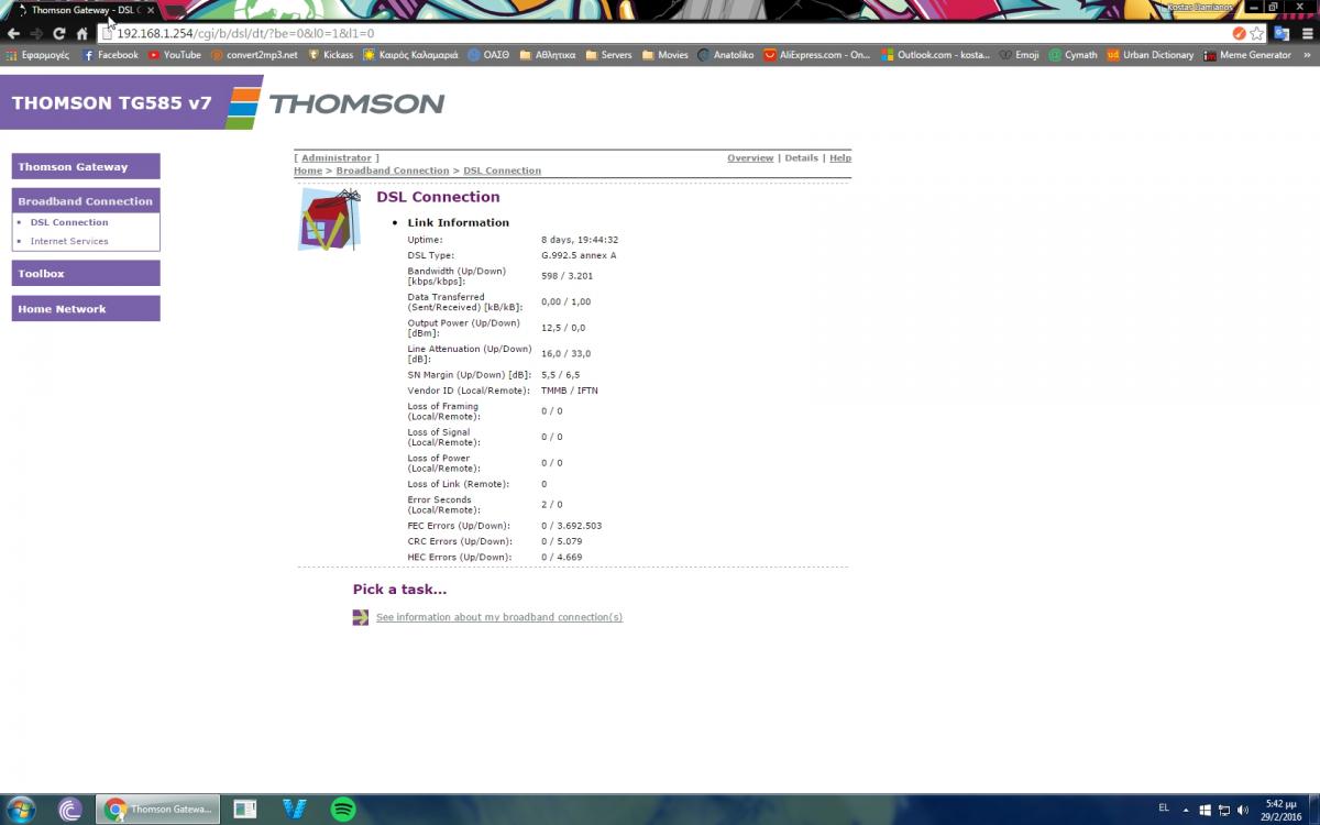 lazdam Δημοσ. 29 Φεβρουαρίου 2016 Δημοσ. 29 Φεβρουαρίου 2016 Με δεδομενα αυτα τα στοιχεια στις φωτο, και βλεποντας σε αρθρα σχετικα θεματα, νομιζω πως δεν δικαιολογουνται οι τοοοσο αργες ταχυτητες.. (δειτε τις φωτο) Εχω forthnet εως 24 Mbps αλλα ουτε που πλησιαζουν οι ταχυτητες μου.. Τι μπορω να κανω? Μηπως θα πρεπε να επικοινωνησω με την forthnet? η καποια αλλη ρυθμιση που μπορω να κανω μονος? ειμαι θεσσαλονικη καλαμαρια κοντα στο γηπεδο του απολλωνα, μηπως το κοντινοτερο DSLAM ειναι αρκετα μακρια ωστε να δικαιολογει τοσο τεραστια μειωση ταχυτητας? ρωτηστε για οποιαδηποτε αλλη πληροφορια η φωτο..