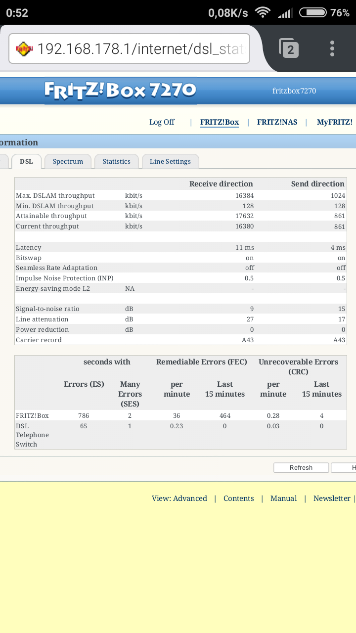 raxanas Δημοσ. 9 Μαρτίου 2016 Δημοσ. 9 Μαρτίου 2016 Γειά σας .Ειμαι στη Hol και εχω ενα netfaster 3. Ειμαι σε fast path και εχω (US/DS) Noise Margin 10.0 dB 9.0 dB Attenuation 10.5 dB 17.5 dB Κλειδώνω στα 12288.Η πολυκατοικία δεν ειναι πολυ παλία.Είναι φυσιολογική η ταχύτητα η μπορώ να κάνω κατι για να αυξηθεί η ταχύτητα εκτος απο 6αρι προφιλ? Ευχαριστώ