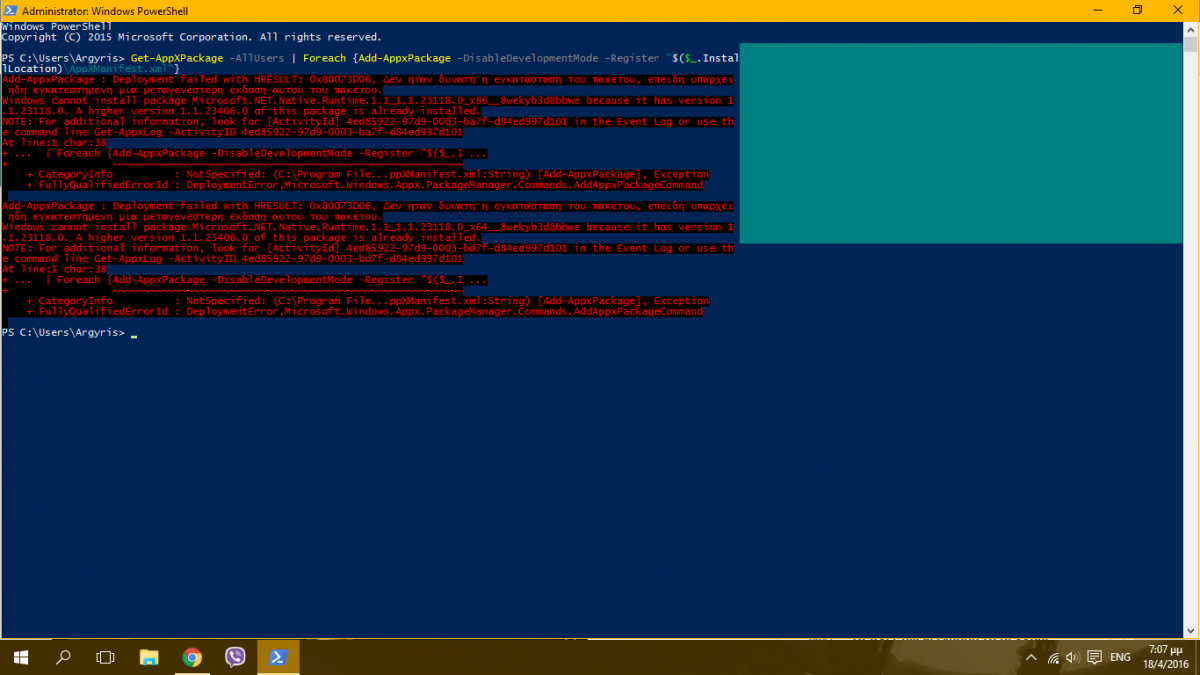 tsakonas Δημοσ. 18 Απριλίου 2016 Δημοσ. 18 Απριλίου 2016 Ανοιξε powershell σαν διαχειριστης. δωσε Get-AppXPackage -AllUsers | Foreach {Add-AppxPackage -DisableDevelopmentMode -Register "$($_.InstallLocation)\AppXManifest.xml"}