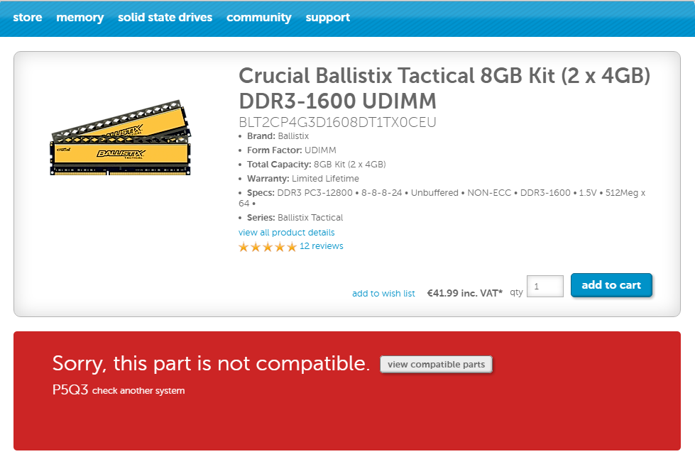 SpirosZ68 Δημοσ. 12 Μαΐου 2016 Δημοσ. 12 Μαΐου 2016 Εγω θα σου προτεινα να αγορασεις κατ ευθειαν απο την Crucial πατωντας add to cart και check out κανονικα οπως θα εκανες με οποιοδηποτε καταστημα http://www.crucial.com/usa/en/compatible-upgrade-for/ASUS/p5q3