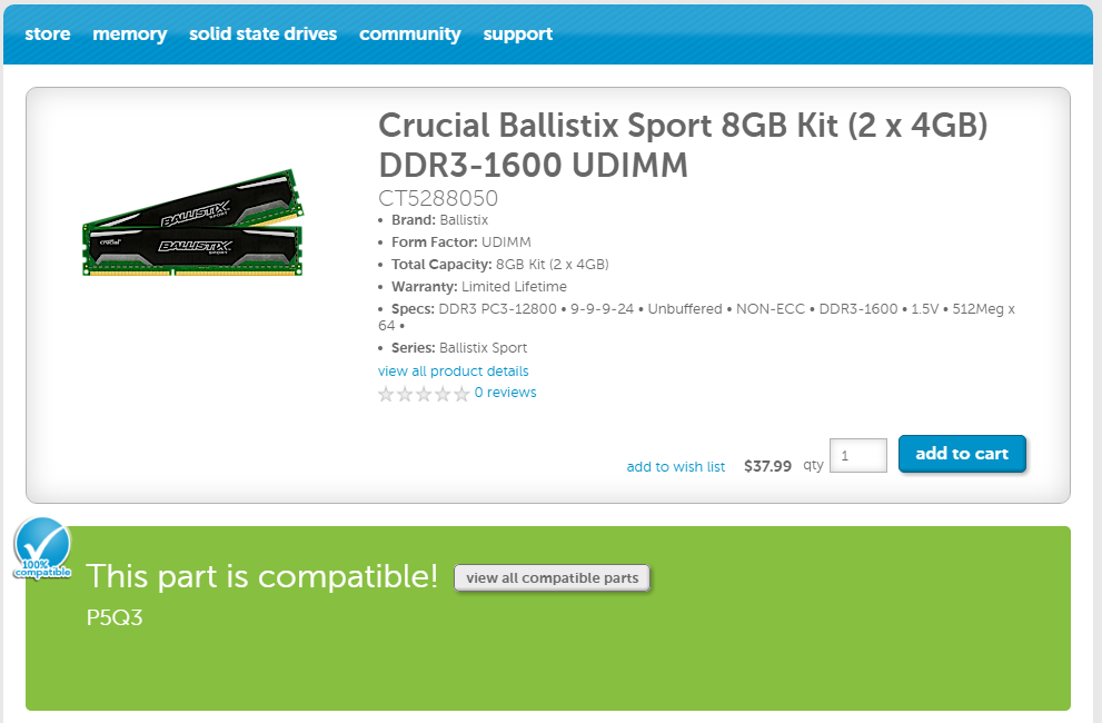 SpirosZ68 Δημοσ. 13 Μαΐου 2016 Δημοσ. 13 Μαΐου 2016 Φίλε μου κανείς δεν μπορεί να σου εγγυηθεί οτι θα δουλέψουν. Κάνε μια δοκιμή με αυτές http://www.e-shop.gr/ram-crucial-bls2cp4g3d1609ds1s00-ballistix-sport-8gb-2x4gb-ddr3-pc3-12800-1600mhz-dual-kit-p-PER.554345 αφού σου βεβαιώσουν στο e-shop οτι μπορείς να τις επιστρέψεις. Αλλιώς το ίδιο απο ένα κατάστημα που τις έχει στο skroutz https://www.skroutz.gr/s/6629950/Crucial-Ballistix-Sport-8GB-DDR3-1600MHz-BLS2C4G3D169DS1J.html Αυτό που έγραψε ο Σπύρος είναι ιδανικό αλλα δεν ξέρω άν είναι εφικτό. EDIT Δεν ήξερα οτι τις έχουν στο πλαίσιο. Τις μνημες του e-shop τις δινει συμβατες. Τις αλλες οχι (δεν ειναι ο ιδιος κωδικος) εγω θα επειρνα αυτες του e-shop για σιγουρια. Σημειωση: στην αναζητηση εβαλα τις μνημες με κωδικο BLS2CP4G3D1609DS1S00Στο σαιτ της Crucial εψαξα με αυτον τον κωδικο και μετα που εβαλα τα στοιχεια που ζηταει το memory finder μου αλλαξε τον κωδικο (προφανως με καποιον νεο του ιδιου προιοντος) και μου τις εβγαλε συμβατες.