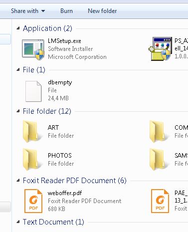 The_Judas Δημοσ. 21 Μαΐου 2016 Δημοσ. 21 Μαΐου 2016 Σε έναν εξωτερικό δίσκο μου, τα windows 7 προβάλλουν τα αρχεία όπως φαίνεται στην συνημμένη εικόνα. Δηλαδή ταξινομούν ανά κατηγορία (application, file, pdf κλπ) ενώ εγώ θέλω την πιο κλασική προβολή. Στους υπόλοιπους δίσκους φαίνονται κανονικά. Πως αλλάζει αυτό;;... έχει κολλήσει το μυαλό μου και δεν μπορώ να το βρω....