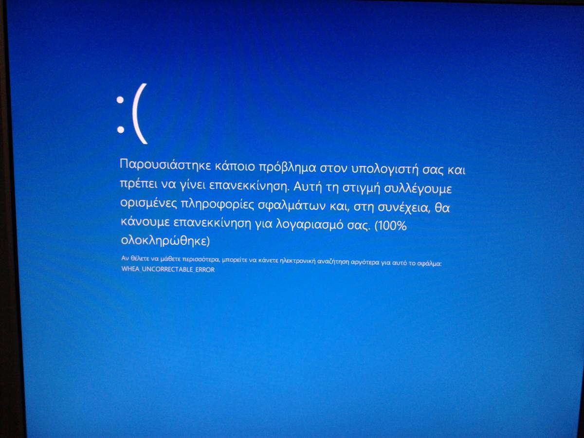 bromiaris Δημοσ. 31 Μαΐου 2016 Δημοσ. 31 Μαΐου 2016 Να και η πρώτη μπλε οθόνη στα Windows 10 pro… Στα καλά καθούμενα βγάζει την μπλε οθόνη και το μόνιτορ πέρασε σε κατάσταση αναμονής… και μετά μόνο με επανεκκίνηση από τον πύργο ξεκόλλησε. Διάβασα μερικά τερτίπια για την αντιμετώπιση… έχει τύχει σε κανέναν? Το σύστημα αποτελείτε από:CPU INTEL CORE I3-6100 3.70GHZ LGA1151ΜΗΤΡΙΚΗ MSI B150M MORTARHDD WESTERN DIGITAL WD10EZEX 1TB CAVIAR BLUE SATA3RAM KINGSTON HX421C14FB/8 8GB DDR4 2133MHZ HYPERX FURYPSU CORSAIR CX430 - 80 PLUS BRONZE CERTIFIED 430WCASE ZALMAN Z1 NEO ATX MID TOWER 1