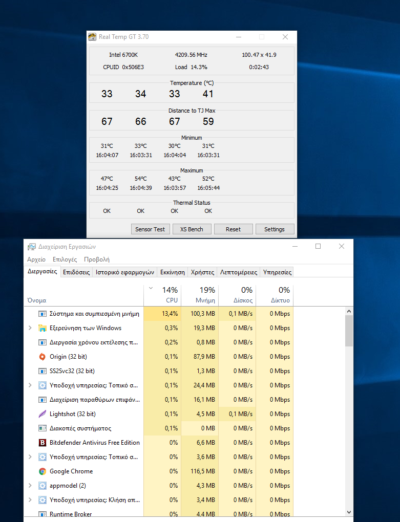 stathisgtr Δημοσ. 16 Ιουνίου 2016 Δημοσ. 16 Ιουνίου 2016 Καλησπέρα ,δεν ξερω αν κάποιος από εδώ το έχει αντιμετωπισει αλλα έχει καταντήσει σπαστικό. Μολις εκανα fresh install τα win 10 και εχω αυτο στο task manager να τραβάει από το cpu συνέχεια. Στα 8.1 δεν είχα ποτέ τέτοιο θέμα,οι θερμοκρασίες από 22-25 έχουν πάει στα 30+ σε idle. Τι μπορεί να είναι και πως να to διορθώσω? Ευχαριστώ για τον χρόνο σας.