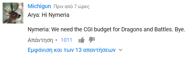 Luxx Δημοσ. 23 Ιουλίου 2017 Δημοσ. 23 Ιουλίου 2017 επισης ο χοντορ τελικα ειδε οραμα τι θα γινει στο μελλον και χαζεψε ή ο Μπραν αλλαξε το παρελθον ? Ειναι πανταχου παρων. Μπορει και αλληλεπιδρα σε παρελθον, παρον και μελλον απ'οτι εχω καταλαβει. Δεν πηγαινει πισω στο χρονο, ουτε βλεπει το μελλον. Απλα η εννοια του χρονου δεν υπαρχει σε αυτη την οντοτητα. Βεβαια ο ιδιος δε ξερει τι δυναμεις εχει. πχ και στην "σπληλια" δεν έμπαιναν αλλα χάρη στον μλk τον Μπράν μπήκαν Στην σπηλια μπηκαν επειδη νομιζω την εσβησαν οι αρχηγοι white walkers, τους οποιους φανηκε οτι δεν επηρεαζει. 1