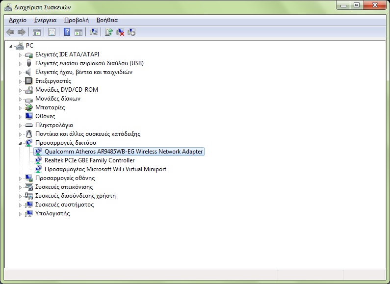 Καπετάνιος Βασίλης Δημοσ. 7 Ιουλίου 2016 Μέλος Δημοσ. 7 Ιουλίου 2016 Ωραία... Για να βρω τον τύπο της κάρτας πήγα στη διαχείριση συσκευών όπως δείχνει η εικόνα που επισυνάπτω. Είμαι στη σωστή κατηγορία; Η κάρτα είναι η Qualcomm atheros?