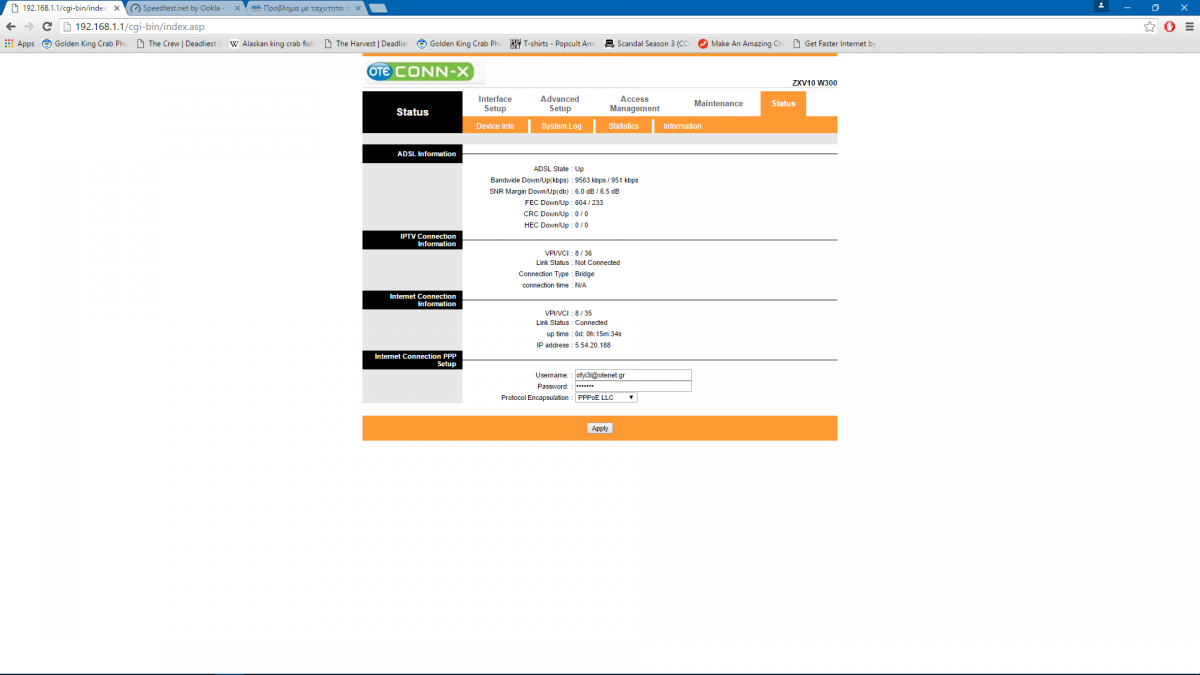 Lego95 Δημοσ. 11 Σεπτεμβρίου 2016 Δημοσ. 11 Σεπτεμβρίου 2016 Καλησπερα στην κοινοτητα ! Το θεμα μου ειναι πολυ απλο, βρισκομαι Μυτιληνη 5 λεπτα απο το κεντρο της πολης, εχω συμβολαιο με 24 ταχυτητα στην hol και ως γνωστον ειναι αδυνατον να φτασω τετοια ταχυτητα. Το καταλαβαινω αυτο και δεν ζηταω να φτασω αυτη τη ταχυτητα... αλλα αυτο που ζηταω ειναι τουλαχιστον τα 12 ! επικοινωνω απο τα Χριστουγεννα με τη hol καθως ενω επιανα 11αρα ταχυτητα οταν γυρισα απο τις διακοπες ειχε φτασει στο 6 ! η απαντηση τους οτι ειμαι λαθος και οτι αυτη ειναι η μεγιστη ταχυτητα...ωσπου προχθς ξανα παιρνω τηλεφωνο γτ μ εκανε παλι κολληματα και να μην τα πολυλογω το παλικαρι μου ειπε οτι η ταχυτητα μου μπορει να φτασει τα 15 και οτι ναι φαινεται στο συστημα οτι πριν τα χριστουγεννα επιανα 11 > οποτε στελνει τεχνικο στο σπιτι κοιταει την γραμμη την παει στο 8 και μου λεει αυτο ειναι το μεγιστο που μπορω να πιασω... Εχω δοκιμασει 3 ρουτερ ολα στη ιδια ταχυτητατ σταματανε και δν ξερω τι αλλο να κανω γ αυτο απευθυνομαι σε εσας να μου πειτς... πρεπει να ρους πω εγω κατι ?? να κανω καποια ρυθμιση στο ρουτερ ?? ειναι ενταξει οι ρυθμισεις μου ??