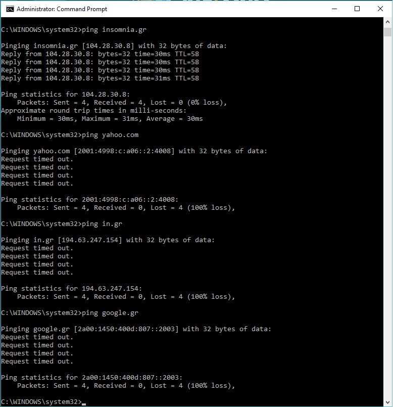 Super Moderators Thresh Δημοσ. 2 Οκτωβρίου 2016 Super Moderators Δημοσ. 2 Οκτωβρίου 2016 Κάνουν block τα ICMP Requests για αυτό βλέπεις time out στο ping που κάνεις...