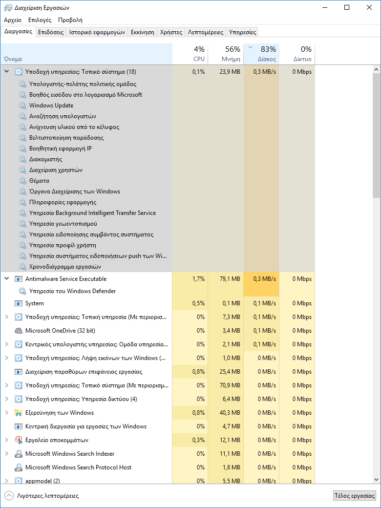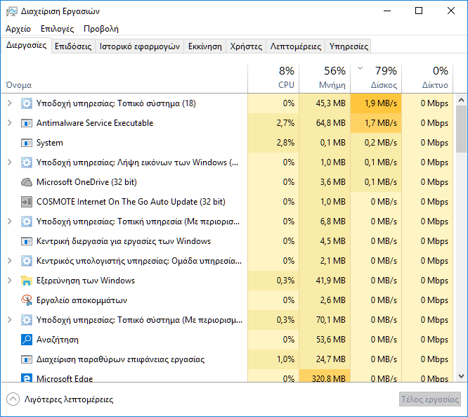 pntzamilis Δημοσ. 13 Οκτωβρίου 2016 Δημοσ. 13 Οκτωβρίου 2016 Τις τελευταίες ημέρες διαπιστώνω ότι ο σκληρός δίσκος του Η/Υ δουλεύει συνέχεια χωρίς να κάνω τίποτα... Το λαμπάκι του είναι συνέχεια ανοιχτό και στη΄διαχείριση εργασιών μου βγάζει τα παρακάτω: Έκανα έλεγχο με το Malwarebytes Anti-Malware και επίσης έκανα online check για ιούς με το Bitdefender online scanner. Και τα δύο δεν βρήκαν τίποτα... Τι συμβαίνει;;; Επειδή δουλεύει συνέχεια ο δίσκος πολλές φορές καθυστερεί όταν δουλεύω παράλληλα (Office)...