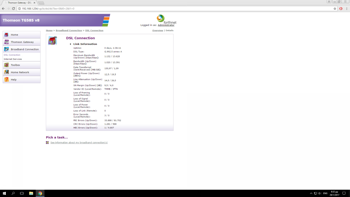 giannisag17 Δημοσ. 29 Ιανουαρίου 2017 Δημοσ. 29 Ιανουαρίου 2017 Παιδια ειμαι στην forthnet εξι χρονια τωρα!!Απο τον αυγουστο και μετα ξεκινησαν τα προβληματα.Καθε απογευμα απο τις πεντε και μετα γινεται χαμος απο 14-15 mbps παω στα 3 μετα στα 8 μετα στα 2!Τι μπορει να συμβαινει?Αυτα ειναι τα στατιστικα της γραμμης...Συνδεομαι με καλωδιο.ειχα ενα thomson που με αυτο ξεκινησαν τα προβληματα μετα μου εδωσαν ενα technicolor και παλι τα ιδια προβληματα ειχα!