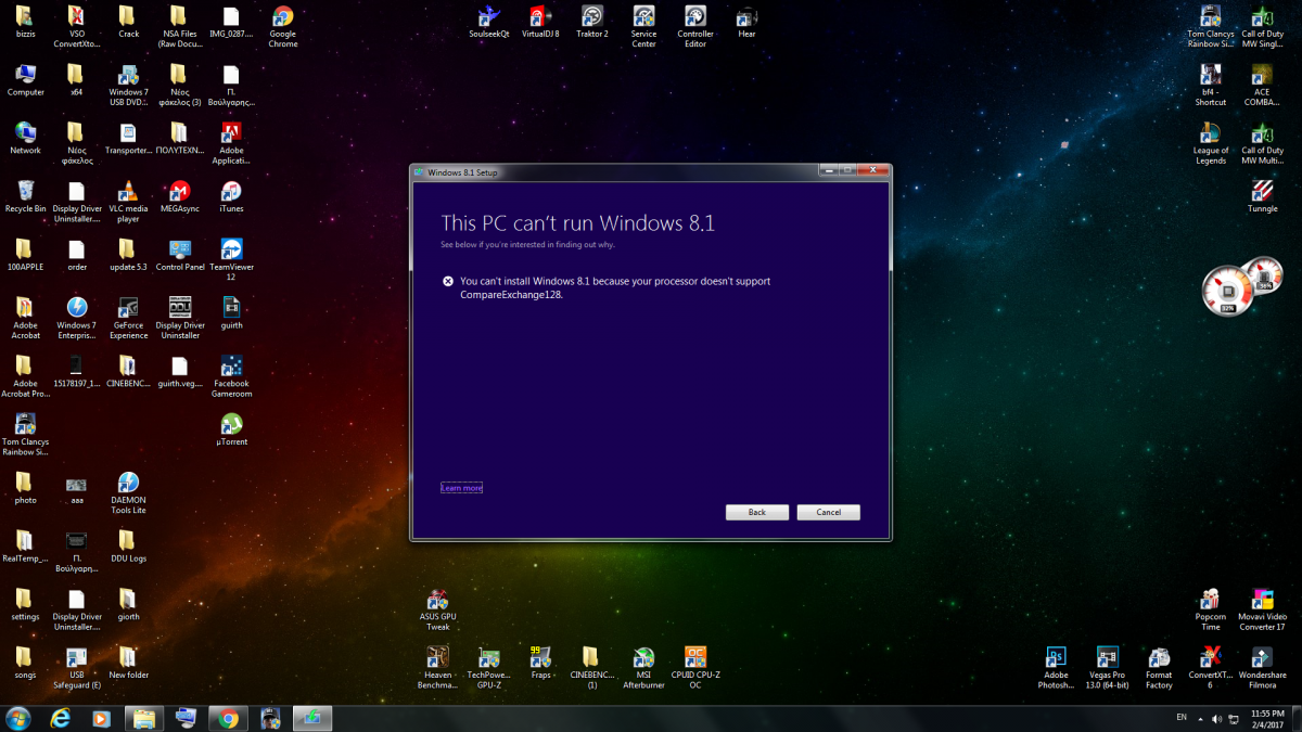 lek88 Δημοσ. 5 Φεβρουαρίου 2017 Δημοσ. 5 Φεβρουαρίου 2017 Σου λέει ότι ο υπολογιστής σου δεν μπορεί να "τρεξει" τα Windows 8,1!!